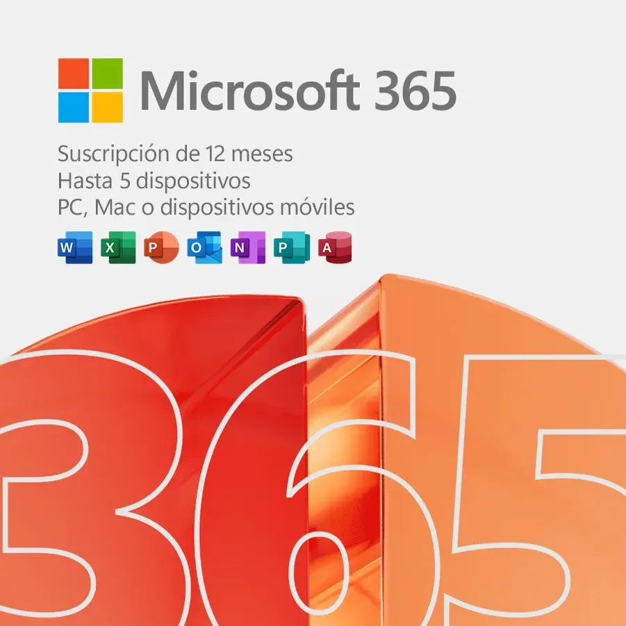 Licencia de Microsoft 365 para instalar en hasta 5 PC. Incluye Word, Excel, PowerPoint, Outlook y más. Activación garantizada, soporte para instalación remota y asesoría básica. Entrega por correo tras la compra.